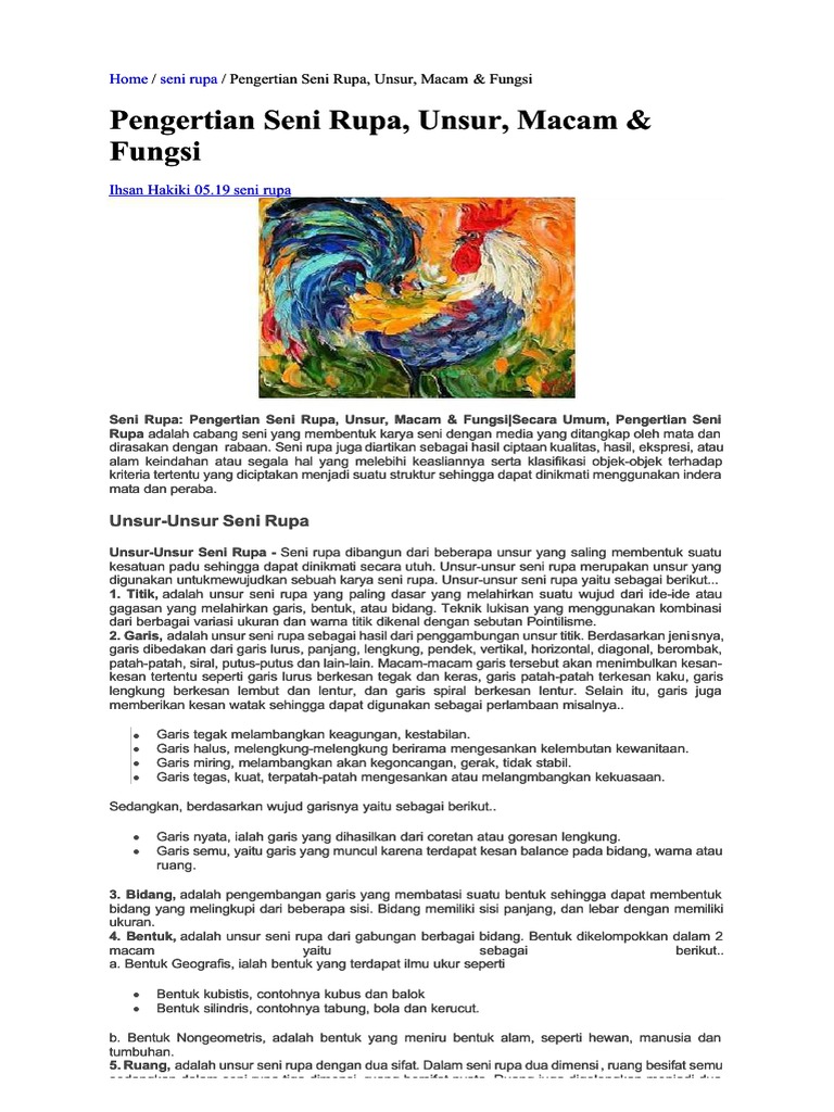 Seni Rupa Murni Pengertian Fungsi Jenis Contoh Perbedaan from www.dosenpendidikan.co.id Apa yang digunakan dalam seni rupa 2 dimensi? Jul 09, 2021 · 8.7. Untuk mengetahui lebih detail, berikut beberapa. Istilah ini muncul pada saat seni rupa dibedakan berdasarkan dari dimensinya, yaitu karya seni rupa 2 dimensi dan karya seni rupa 3 dimensi. 14menggambar karya seni rupa 2 dimensiseni rupa dua dimensi adalah karya seni yang memiliki dua ukuran atau s. Karya seni rupa 2 dimensi atau dwimatra merupakan karya seni rupa yang dalam bentuknya memiliki ukuran panjang dan lebar atau luas, yang hanya dapat dilihat atau dinikmati dari arah depan saja. Siapa bahan yang digunakan untuk berkarya seni rupa 2 dimensi? Jul 03, 2020 · pengertian seni rupa dua dimensi adalah karya seni yang memiliki dua ukuran atau sisi.