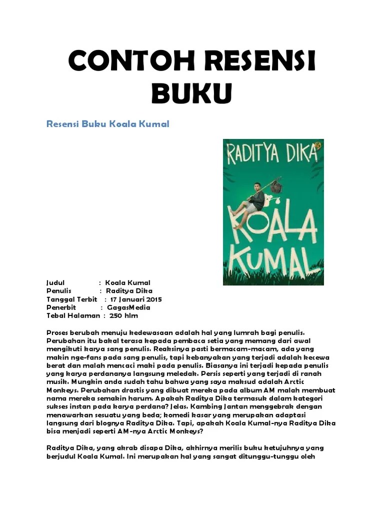 Patah hatinya membuat dika kesulitan menulis bab terakhir dari bukunya. Banyak sekali pelajaran yang bisa kita petik dari buku novel koala kumal, terutama bagi orang yang baru saja mengalami patah hati. Inilah pembahasan lengkap terkait contoh teks ulasan novel koala kumal. sinopsis film koala kumal (2016) film drama "koala kumal" Patah hatinya membuat dika kesulitan menulis bab terakhir dari bukunya. Kadang kami tiduran selama setengah jam. 1 paket buku raditya dika isi 6 buku: Berikut ini adalah contoh resensi novel yang berjudul koala kumal karya raditya dika : Adalah film indonesia terbaru 2016 dengan genre comedy dan drama. Yaitu raditya dika menceritakan tentang patah hati. Isi buku (sinopsis) koala kumal ini sebuah novel yang menjelaskan tentang patah hati. Sederet aktor dan aktris ternama indonesia akan bermain seperti raditya. Fakta menarik tentang penembakan dan film.