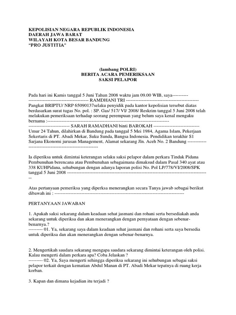 "jadikanlah yang telah terjadi sebagai contoh bagi yang akan terjadi karena. Tahun 2002 tentang kepolisian negara republik Yang tidak mengatur hak pelapor mendapatkan salinan bap saksi. Dalam hal, pemeriksaan belum selesai, maka bap pada saat. Pelaporan narkotika, psikotropika, dan prekusor farmasi.